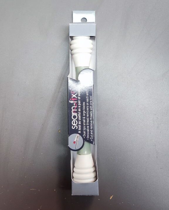 El nuevo modelo de Seam-Fix, en este caso es doble tamaño, se ha convertido en el descosedor mágico. Consta de dos puntas: una fina para descoser costuras normales del día a día; y otra más gruesa que es perfecta para hilos fuertes o costuras como las vaqueras. En sus extremos tiene dos bolitas como una colmena de abejas que es de goma. Esto ayuda, al frotarlas contra los hilos cortados, a que se peguen y salgan fácilmente sin necesidad de dejarnos los dedos quitando hilos.